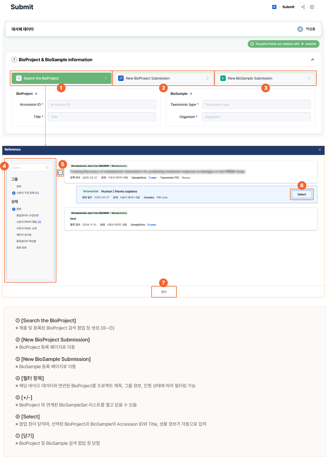 ※ 등록하고자 하는 바이오 데이터와 관련된 BioProject와 BioSample 정보 입력