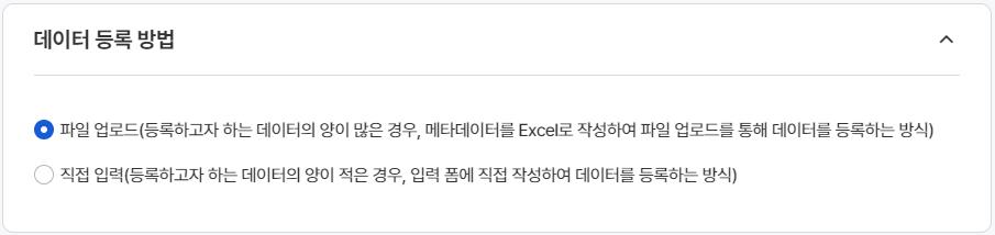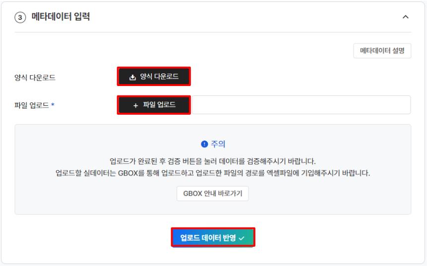 가. 주요데이터 타입별 메타데이터 작성 및 실데이터 파일 업로드 단계