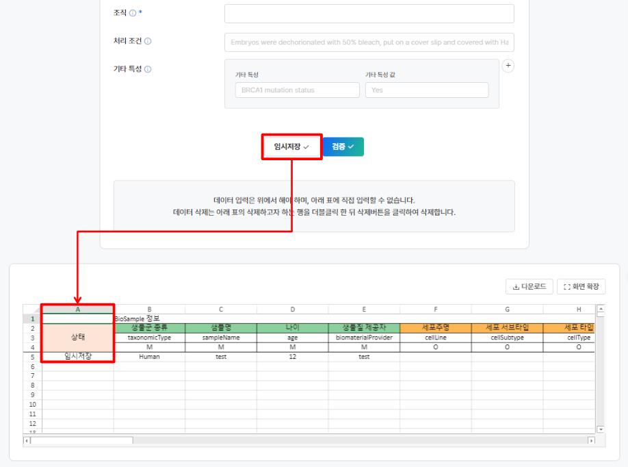 ※ BioProject 및 시료/기기/특성 정보 작성은 본 사용자 가이드(3-1. 기본 연구 정보 작성 및 등록, 3-2. 시료/기기/특성 정보 작성) 참고
