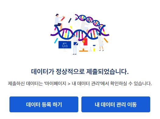 BioProject 및 시료/기기/특성 정보를 양식에 따라 등록 후, 각 실험데이터(raw 및 가공 데이터)를 등록