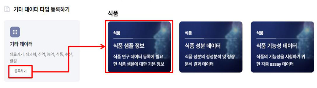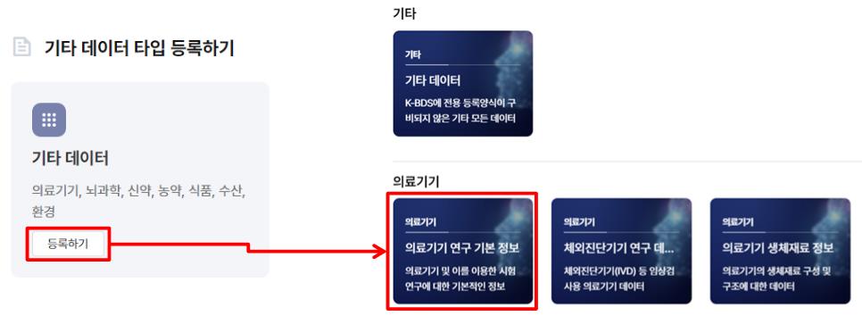 - ② 등록 대상 데이터 타입의 하단 [등록하기] 클릭